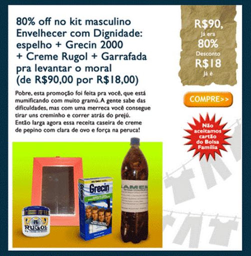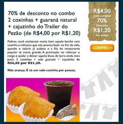 Ótima sátira aos clubes de compras coletivas (que, aliás, ADORAM fazer SPAM, não?!)
