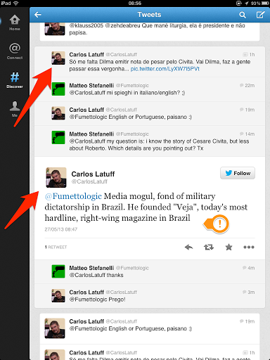 Um dos abobadinhos ali ainda usa um inglês macarrônico, ridículo, para dizer que a Veja é uma revista de direita – obviamente o pateta não sabe o que é direita. Nem inglês. Nem revista.
