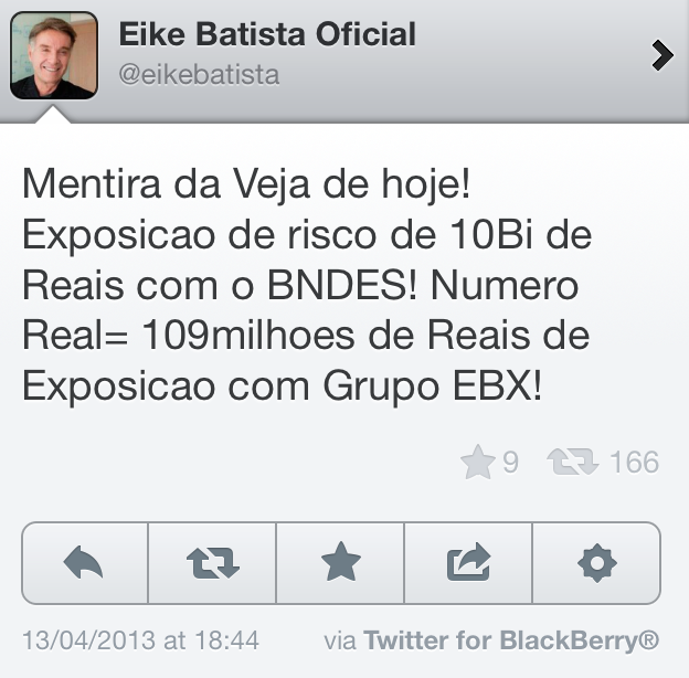 Por outro lado, a Veja publicou algumas reportagens apontando problemas no repentino “sucesso” do grupo EBX, e Eike não gostou: