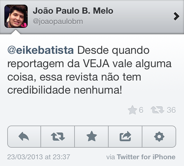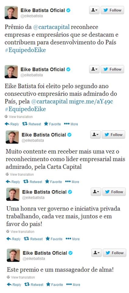 Ele recebeu, via twitter, o apoio de gente que entende muito do mercado, gente que sabia que a Veja estava errada e Eike é quem estava certo: