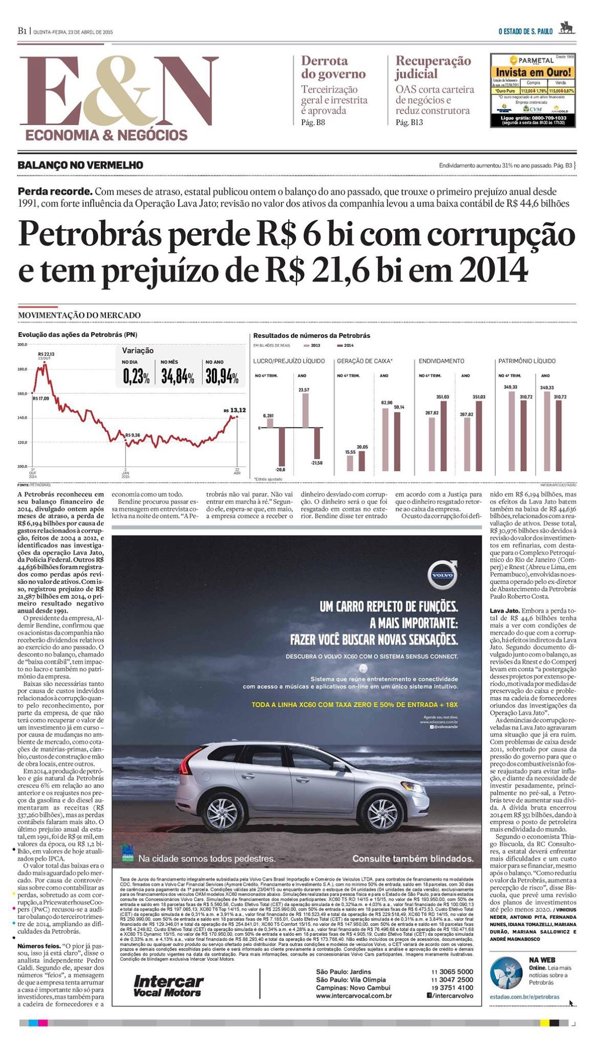 ATUALIZAÇÃO DE 02/02/2016: Graças a um leitor do blog (obrigado, Celso), fui informado que o site Diário do Poder publicou, na semana passada, algumas notas sobre a Petrobras. Achei relevante para complementar as informações do post, por isso reproduzo abaixo: