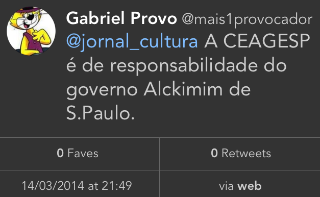 Na semana passada, o governo fez um evento para lançar uma proposta chamada #HumanizaRedes – sim, com a hashtag. Desde então, a conta desse “serviço” no twitter tem sido a efígie do (des)governo Dilma: só enfiou os pés pelas mãos, só fez (e escreveu) besteira. Mas a melhor parte: desde sexta-feira (há 4 dias, portanto), a conta vem sendo bombardeada no twitter (não acompanho no Facebook, mas imagino que também esteja) graças a uma iniciativa ABSOLUTAMENTE GENIAL do Danilo Gentili:
